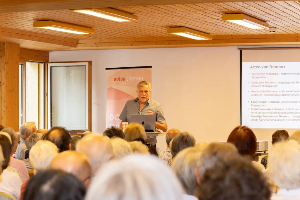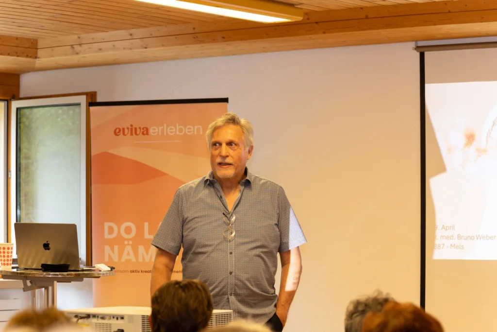 Am 29. April 2025 fand im Treffpunkt Melibündte ein Vortrag zum Thema Demenz von Dr. med. Bruno Weber statt. Er gab praktische Tipps und Tricks für den Alltag, um dieser Krankheit vorzubeugen und beantwortete individuelle Fragen. Der Apéro im Anschluss wurde rege für den weiteren Austausch genutzt.